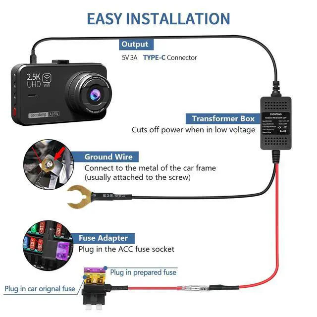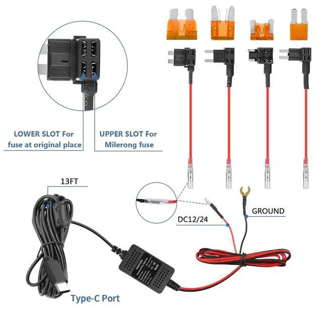 This upgraded dash cam hardwire kit usb c come with a sensitive voltage sensing switch, it will monitor the car battery voltage in real time. Once the input voltage is lower than 11.4V or higher than 23.2V, the hardwire kit for dash camera will cut the power supply automatically, leaving enough power to star the car. Never damage your battery!