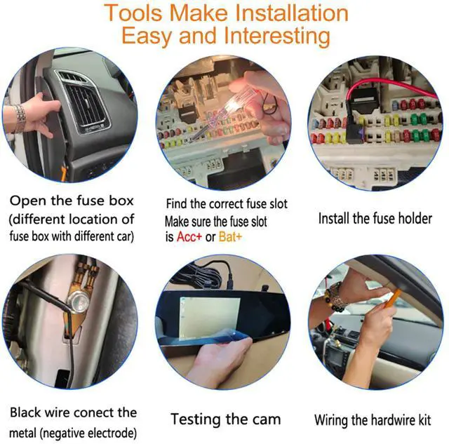 Open the fuse box(the position of the fuse box varies among different cars), find the correct fuse slot for your hardwire kit. If you need to find an ignition switched fuse, put the key in the vehicle, find the fuse which is not lit up while the car is off, and test it by turning the car on to see if it lights up. If your kit requires constant power, turn off the car and remove the key to see which fuse slots stays lit on.