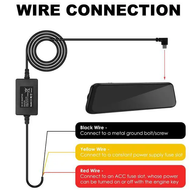 The hardwire kit is designed to accept voltage inputs from various types of vehicles, operating seamlessly on a range of 12V to 24V. Whether you own a car, truck, or SUV, this hardwire kit is the ideal solution for ensuring a continuous power supply.
