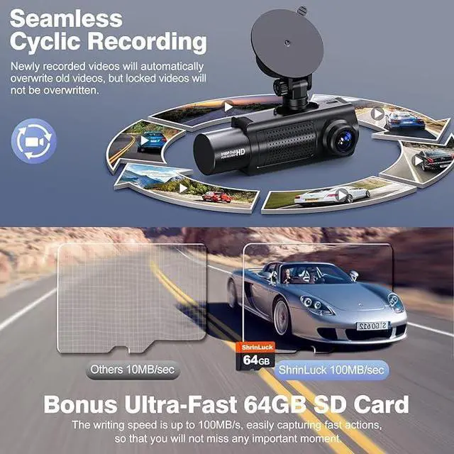 Switch to dual-lens mode and capture both the road ahead and your car’s interior at 1080P resolution. Ideal for family trips, ride-sharing, or everyday driving—this setup ensures you don’t miss a moment inside or out.
