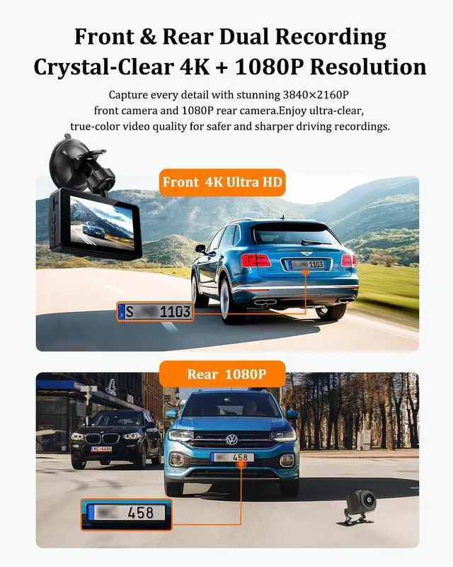 High-Definition 4K Dash Cam Front Rear Engineered for Effortless Road Recording