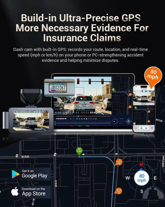 4K+1080P Dual Dash Cam: The Gleetour G2 dash cam front and rear setup features a 4K Ultra HD front camera and a 1080P rear camera. With its wide 170° front and 150° rear coverage angles, this dash cam captures a broad view of the road, reducing blind spots and recording essential driving moments such as traffic conditions and surroundings for enhanced safety and peace of mind.