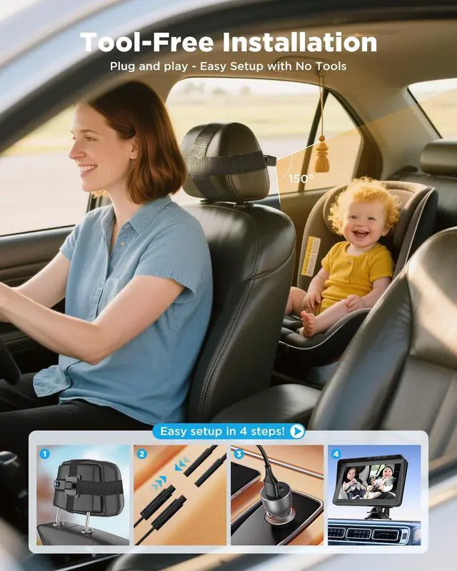 60-Second Setup: No Tools, No Stress: Universal USB Power & Heavy-Duty Straps Secure the cameras to headrests with industrial Velcro, plug into any car charger or USB port, and start monitoring in seconds. Perfect for SUVs, trucks, or minivansno wiring or tech skills needed!