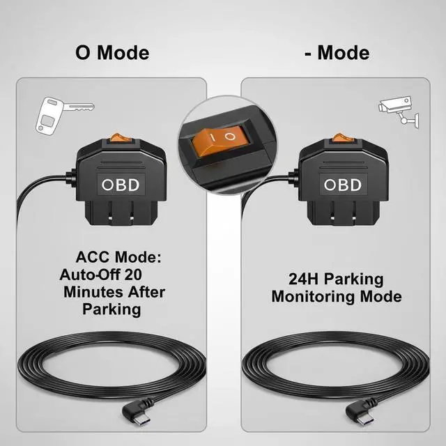 Equipped with an intelligent dual-mode system, this Type-C OBD adapter supports both 24-hour parking monitoring and ACC-controlled power. Parking mode keeps your dash cam powered even when the vehicle is off, ideal for monitoring incidents while parked. ACC mode automatically shuts off power approximately 20 minutes after the engine is turned off, reducing unnecessary battery drain and supporting long-term vehicle health.