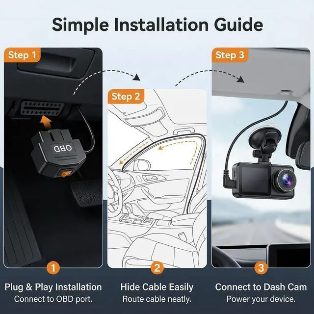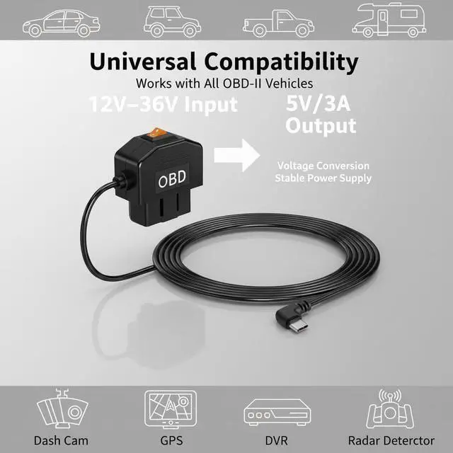 Whether youre protecting your vehicle while parked, recording daily commutes, or upgrading your dash cam setup, this OBD2 power cable delivers dependable performance, intelligent protection, and installation simplicity. A practical upgrade for drivers who value safety, convenience, and a clutter-free interior.