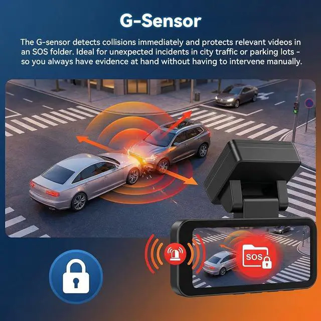 Loop Recording & G-Sensor: The dash cam front and rear comes with Loop recordingensuring continuous footage, while the G-sensor automatically locks collision videos to prevent overwriting