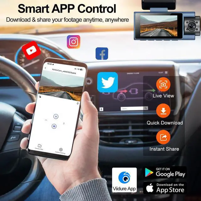 WiFi/App Control Car Camera You just need to connect your smartphone to dashcam WiFi and then you can use the "Viidure" app to view, playback, and manage the dash cam on your IOS or Android devices. You can also download and edit videos in the app. And you can share your travel scenery and wonderful moments with your friends and family.