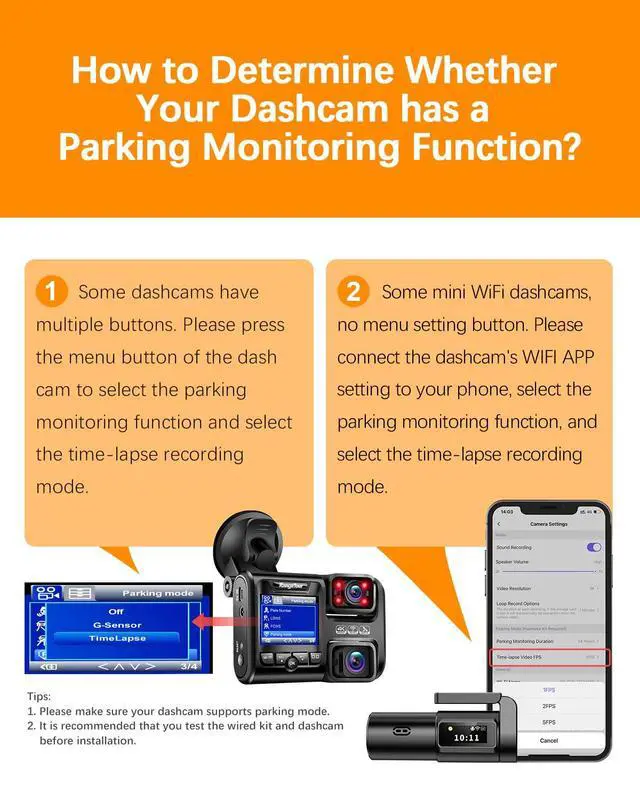 Make sure your dash cam has parking monitor function in the dash cam settings menu, otherwise do not purchase this hardwire kit.