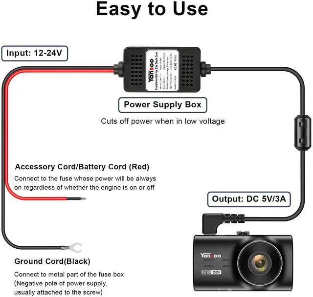 Yansoo Dash Cam Hardwire Kit usb c for 24H Parking
