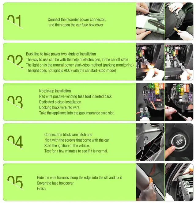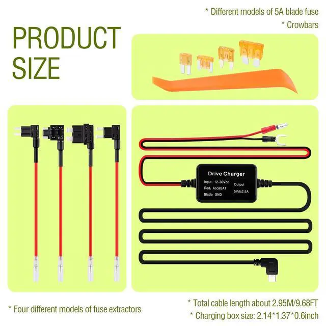 ? Anti-reverse connection design, the wrong positive and negative connection will not damage the buck line. With tape fuse non-destructive power extraction, is the best companion for car recorders!