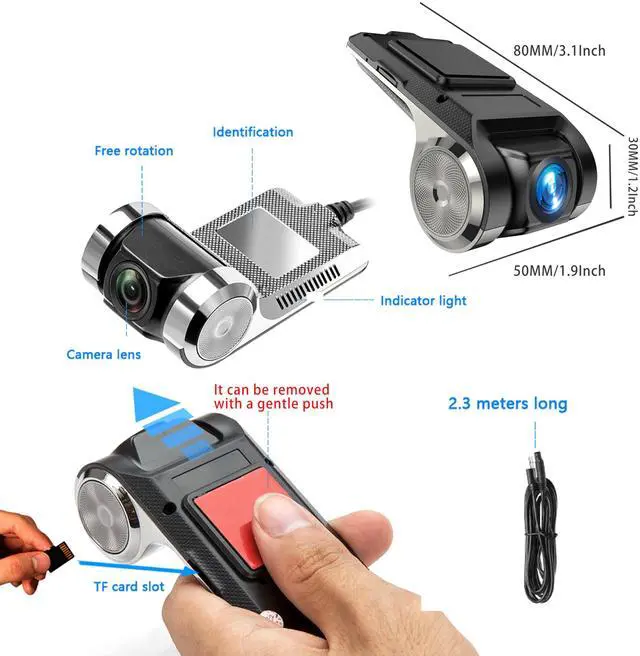 USB Car DVR Camera Video Recorder, USB Dash Cam, WDR Full HD Dash Camera Car Driving Recorder with 64GB Micro SD Card, Wide Angle, Loop Recording Night Vision ADAS 24Hours Monitor