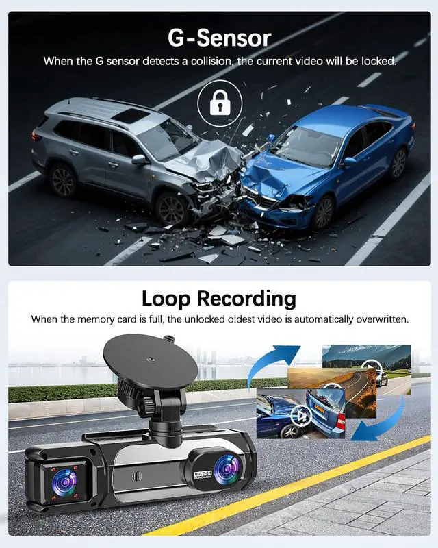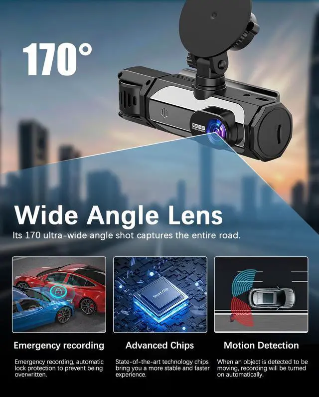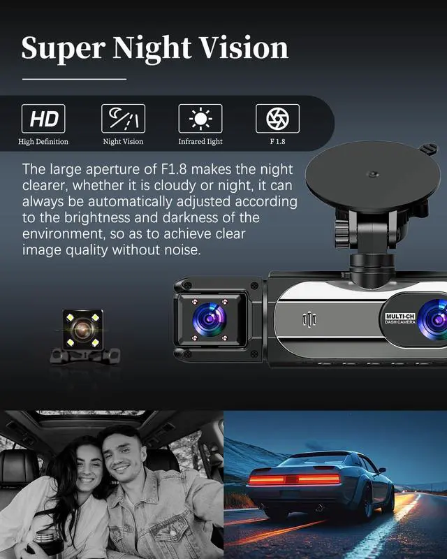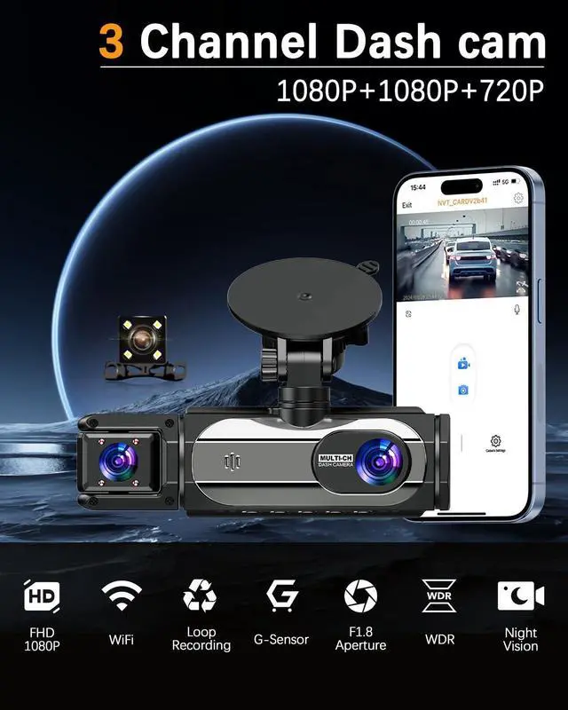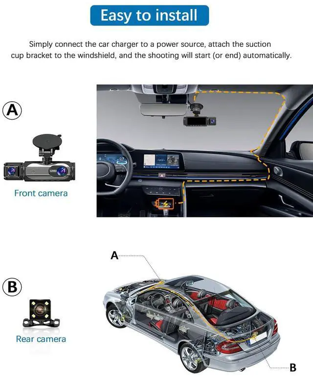 Universal Fit, Easy Setup:YUINWEN S3 3-Channel Dash Cam fits 99% vehicles: cars, SUVs, trucks, vans (e.g., F-150), rideshares, fleets.No Wiring Expertise Needed. Plugs into 12V/24V socket (cables incl.). Mounts via 3M adhesive (windshield/dash).