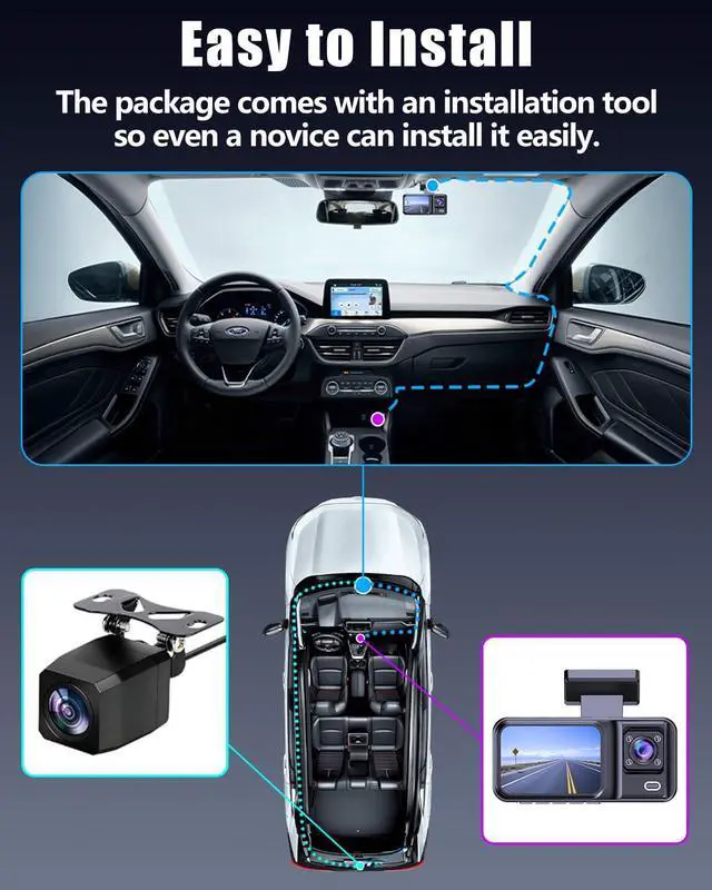 4 IR Cabin Light & Clearer Night VisionThanks to 6-glass lens, big aperture and night vision technology, the Wkreuoar car camera performs well in color precision and clarity whether day or night. 4 IR Light of the dashcam face to the cabin, accurately capture clear footage of the driver and passengers even when the cabin is under low light conditions or completely dark, ideal for rideshare drivers such as Uber, Lyft, and Taxi