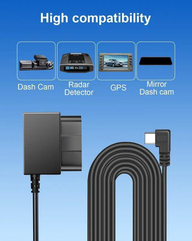 Universal Compatibility Designed for seamless use with a wide range of dash cameras, GPS devices, and radars. This OBD hardwire kit plugs directly into your vehicle's OBD port, but is not compatible with electric vehicles (EVs). A versatile solution for all non-EV cars