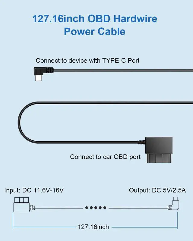 Clean and Space Saving By using this dash cam OBD hardwire kit, you can easily hide wires and cables, making your carpet look wire-free and clean; Moreover, this dash cam charger will not occupy your Your car's lighter port and allows you to use the port to charge other devices in your car