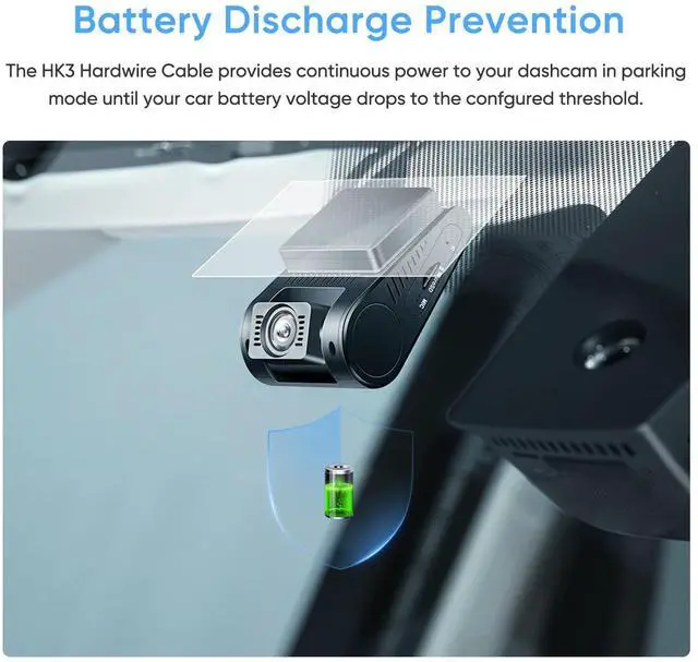 Yes, the hardwire kit features built-in low-voltage protection. It automatically cuts power to the dash cam when your vehicle's battery drops to 11.8V (for 12V systems) or 24.8V (for 24V systems), preventing battery drain.?