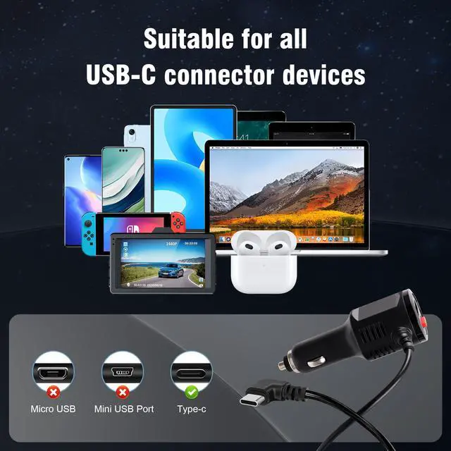 - Simultaneous Type C (5V/2.4A) & USB-A charging