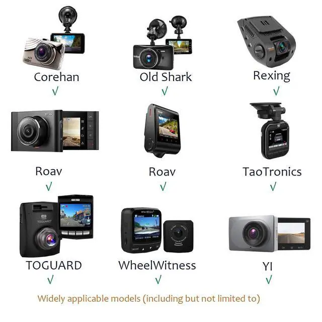 Rexing v1, YI 2.7", YI Nightscape, Crosstour, APEMAN, Roav, Old Shark, E-ACE, TaoTronics, WheelWitness, JEEMAK dash cam and more... (Including but not limited to)