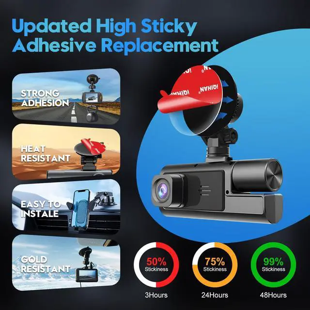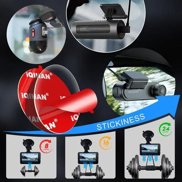Transparent double-sided dashcam sticky pads are made of high-quality acrylic material that is stable and tough, providing excellent holding power and durability while maintaining a clean, unobtrusive appearance that minimizes the impact on the appearance of your equipment.
