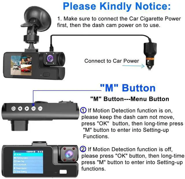 - Easy Installation: Install the dashcam on the windshield, then plug the power cable into the car cigarette lighters. Please clean the windshield, so the sunction cup can be fixed tightly on the windshield.