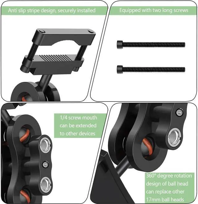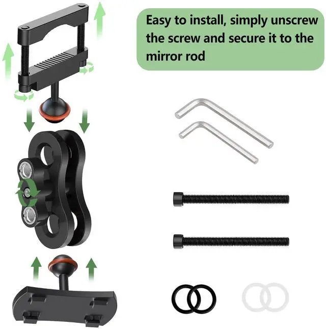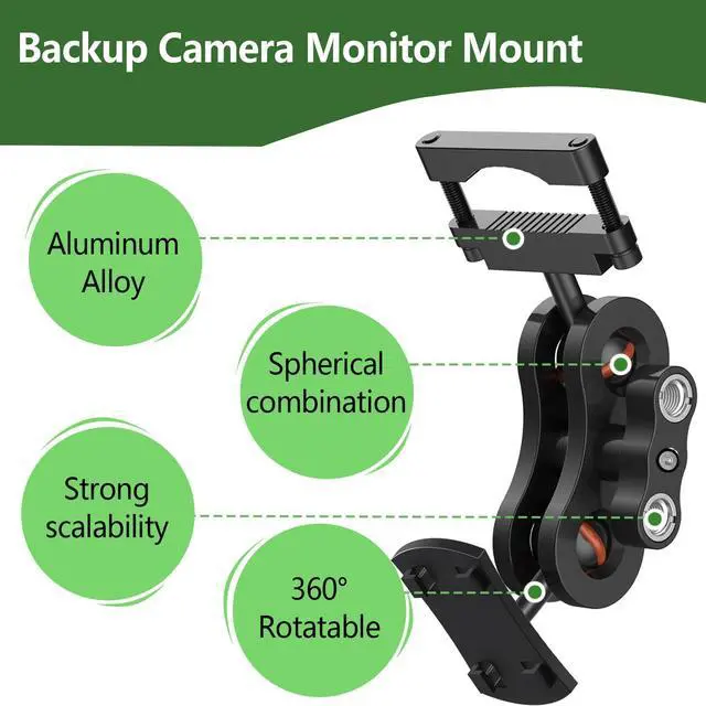 Rearview mirror reversing camera bracket has strong expandability, and the bracket handle is equipped with a 1/4 screw hole for easy expansion of different devices