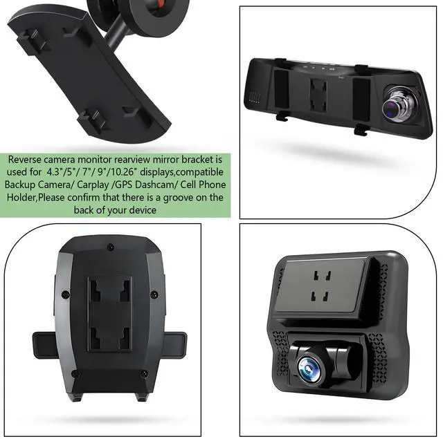 Wide compatibility: Reverse camera monitor rearview mirror bracket is used for 4.3"/5"/ 7"/ 9"/10.26" displays,compatible Backup Camera/ Carplay /GPS Dashcam/ Cell Phone Holder,Please confirm that there is a groove on the back of your device.