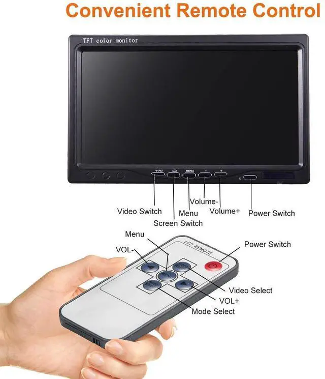 Our 7 in monitor is with a 8 Pin female connector, and a RCA cable with 8 Pin Male connector is included.