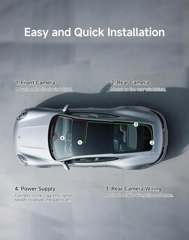 [Dual Dashcam with Loop Recording & FREE 64GB Memory Card] - Never miss a moment! Our dual dash cameras continuously record front and rear driving videos in loop mode, automatically overwriting old footage to save space. Includes a FREE 64GB memory cardready to use right out of the box. The seamless loop recording ensures 24/7 protection for your vehicle, capturing every road detail without manual cleanup. Perfect for all cars, it safeguards your journey with zero memory worries!