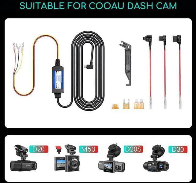 WIDE APPLICATION - The 13ft hardwire kit for dash camera can fit most of 12-24V vehile' s lengh need like truks, SUV, etc., and compatible with COOAU dash cams (fit D30S M53 D20 D20S, not fit M57 or M26), most of dash cams, radars, GPS navigators (fit these products but CH410 does not have wireless capabilities) etc. Please confirm your equipment is Micro USB port.