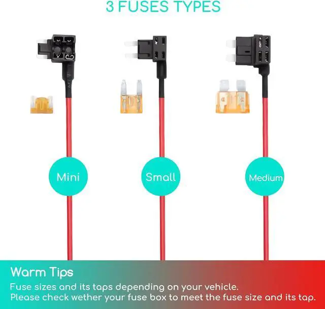 LOW VOLTAGE PROTECTING - The USB hardwire kit will automatically cut off the power after 60s when the voltage is lower than 11.9V or 23.9V, preventing the car battery running off. The hardwire kit has 3 types of fuse plugs are optional, please determine your fuse type before purchasing
