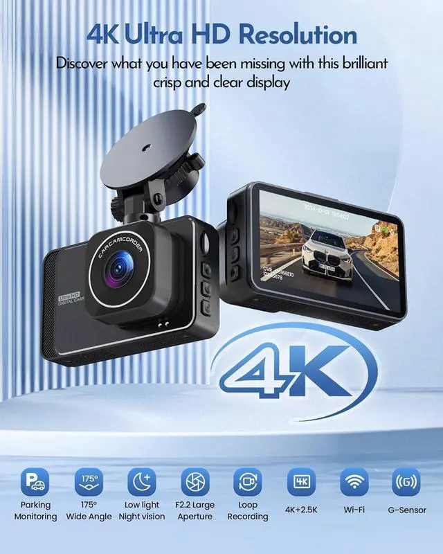 Car Camera: The front camera supports up to 4K 3840*2160 resolution, delivering cinematic smooth 4K image quality that makes reading license plates a breeze, day or night.