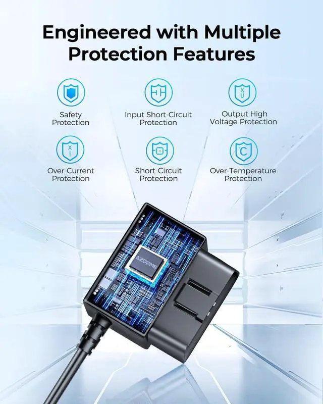 Low Voltage Monitoring: When AZDOME OBD hardwire kit detects that the battery voltage is too low, it will automatically stop drawing power from the battery to prevent the battery from being over-discharged.