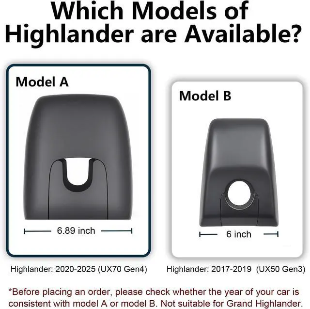 Please carefully review the second image to help select the correct model. Model A fit for Highlander & Hybrid 2020 2021 2022 2023 2024 2025 (UX70 Gen4), Model B fit for Highlander & Hybrid 2017 2018 2019 (UX50 Gen3). if you are still not sure which model is suitable for your vehicle style, please take a photo of your original car sensor cover and send it to us, and we will confirm it for you.