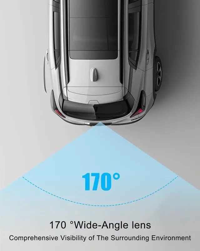170° Real-time Wide AngleBackup Camera Provides a wide 170-degree field of view in real-time, ensuring comprehensive visibility of surroundings while reversing.