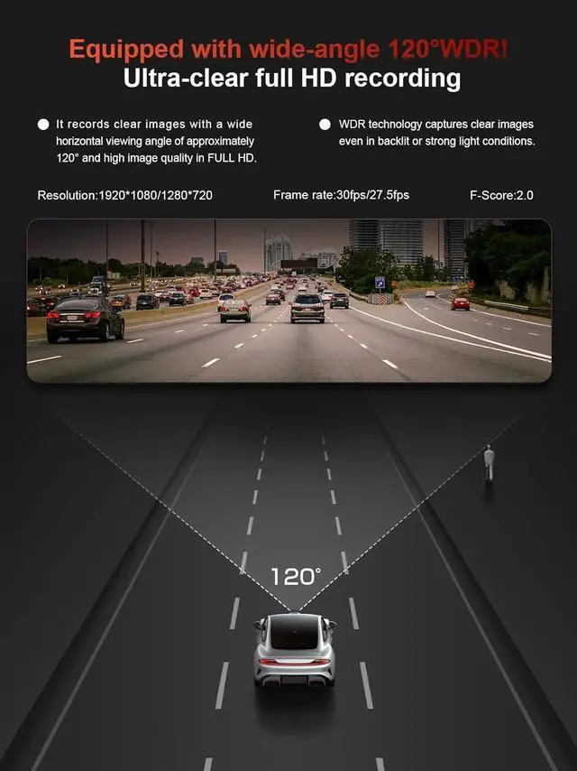• FHD 1080P Dash CamRecording FHD 1920X1080P/30 fps video.Its 140° wide-angle lens minimizes blind spots, capturing up to four lanes of traffic. This dash camera for cars ensures every detail is preserved with exceptional clarity, offering comprehensive coverage both day and night.