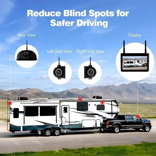Stable 2.4GH z Wireless Transmission Featuring dual-antenna technology, this system delivers a robust 2.4GH z digital signal with exceptional stability and zero latency. Achieves up to 330ft (100m) transmission range in open areas and maintains reliable operation within 164ft (50m) on vehicles. Engineered for compatibility with various commercial vehicles including RVs, motorhomes, trucks, semi-trailers, box trucks, and tractors.