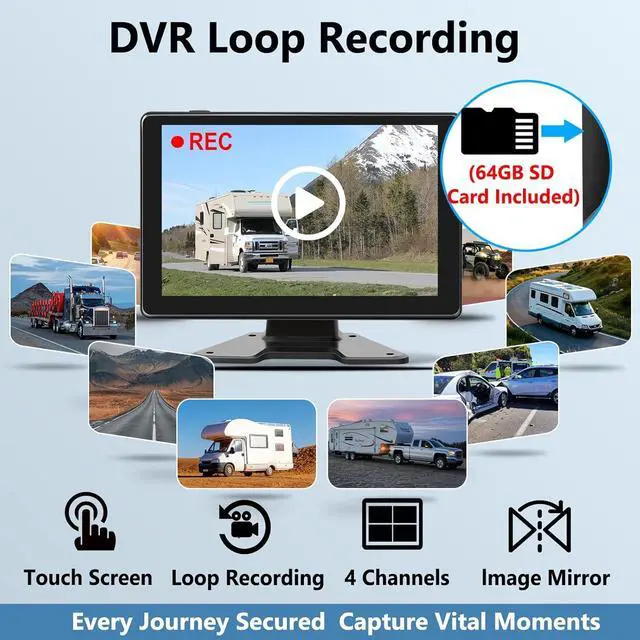Loop Recording and DIY Reversing LineWith the in-built parking guidance feature, truck/ RV/trailer drivers can now execute every parking and reversing action seamlessly and with greater confidence. Continuous loop recording can automatically save critical shots in sudden parking or collision events. The rv backup camera wired can continuously records when the storage card is full and automatically erases old files.