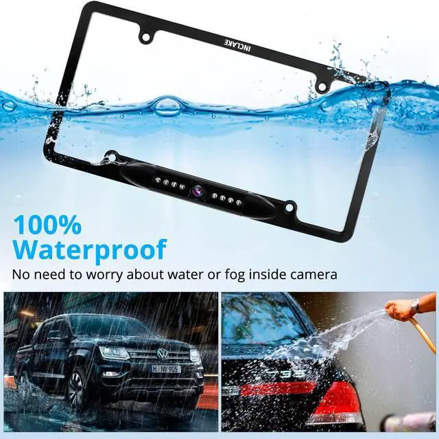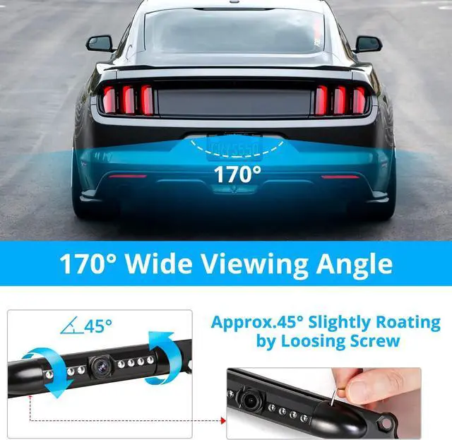 IP68 Waterproof and 170° Adjustable Viewing AngleBack up camera will be protected from strong water flow from any direction, such as rain and car washing. Works well in extreme weather. Adjustable 170° wide viewing angle can help you clearly check hidden blind spots, making parking safer and easier.