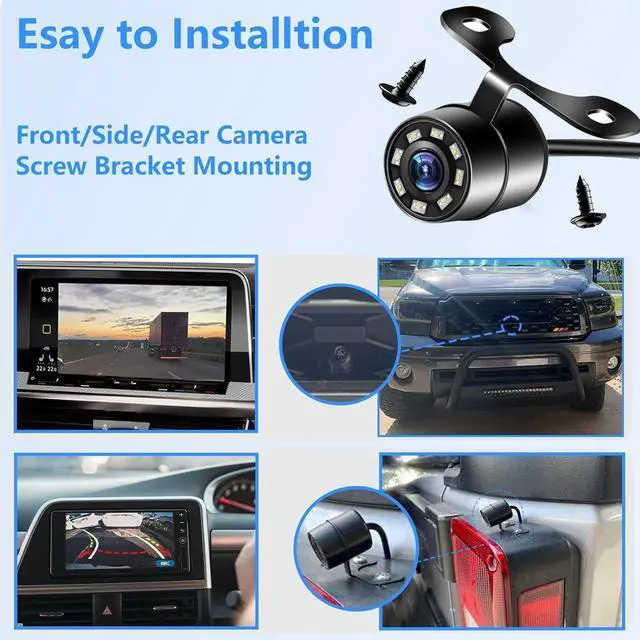 HD TRUE COLOR NIGHT VISION: The backup camera for car is equipped with 8LED lights, which can provide good lighting in low light and no light environment, and also provide color image display instead of black and white image.
