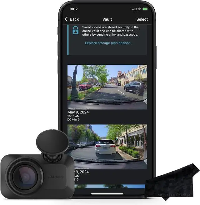Save time, and avoid downloading or editing large video files with the online Vault, which automatically stores important saved video clips so you can view and share with the Garmin Drive smartphone app; you can even access high-end features, such as dash cam live view (requires a paid Vault subscription and active Wi-Fi network connection; nonpaid users can only view and download files when near the dash cam)
