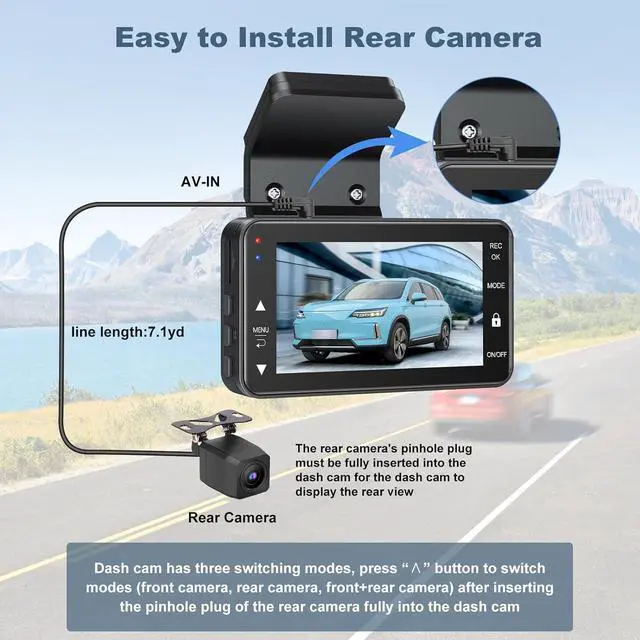 Loop Recording & G-SensorFree with 64GB microSD card. When the storage limit is reached on the memory card, the newly recorded video in the car dash cam will automatically overwrite the old one, realizing seamless loop recording. Once the G-sensor detects a sudden collision, the dash camera will automatically lock and protect the relevant footage to ensure that it won' t be overwritten during loop recording.