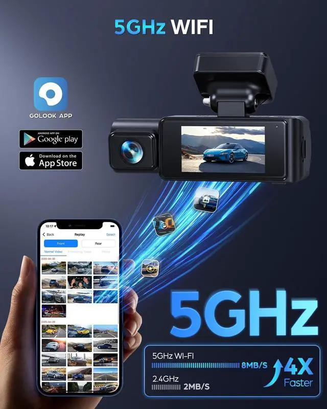 5.8G Wi-Fi & GPS for Real-Time Tracking and Video Management - Connect seamlessly to the GOLOOK app via 5.8G Wi-Fi for fast video transfers, real-time streaming, and easy video management. The built-in GPS records your driving route, speed, and location, offering precise travel data for accident documentation and peace of mind. This dash camera for cars ensures you have full control of your recordings and travel data.
