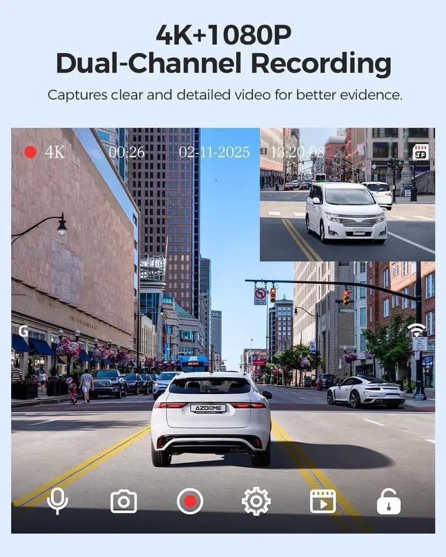 Convenient App Control: M01 Max 4K dashcam for car is built in Wi-Fi, enables you easily manage settings and view, download, playback and share videos via the dedicated AZDOME app.