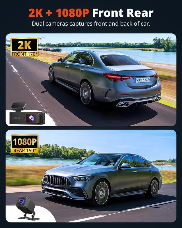 DASHCAM FRONT AND REAR CAMERA: Dual dash cam with high speed 64GB sd card. Front facing dash camera records 2k videos at 170°, waterproof rear camera records 1080P videos at 150° simultaneously. Mini hidden dashcam, 1.5 ' ' display for video preview