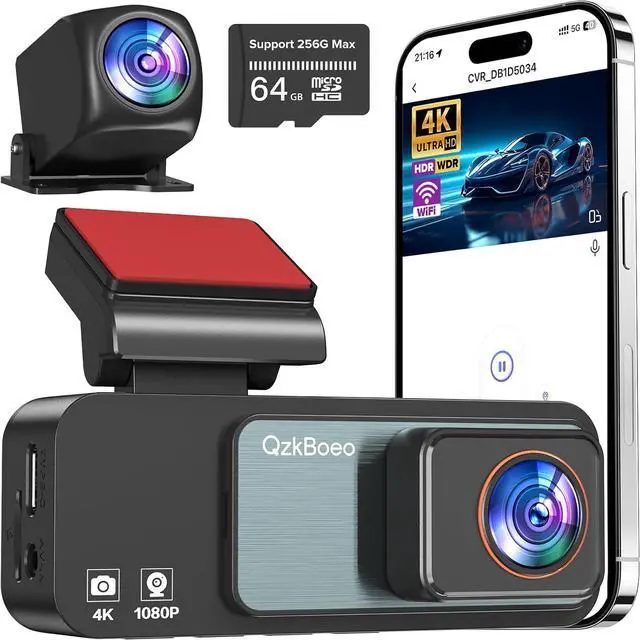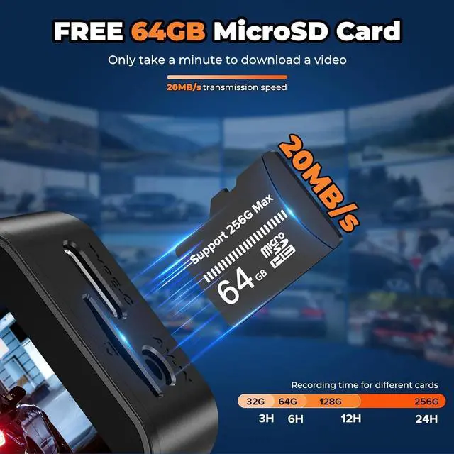 64GB Card Included & Impact-Proof Recording This 4k dash cam front and rear comes with a 64GB card pre-installed and supports up to 256GB expansion. The G-sensor collision detection locks vital videos, keeping your most important footage safe.