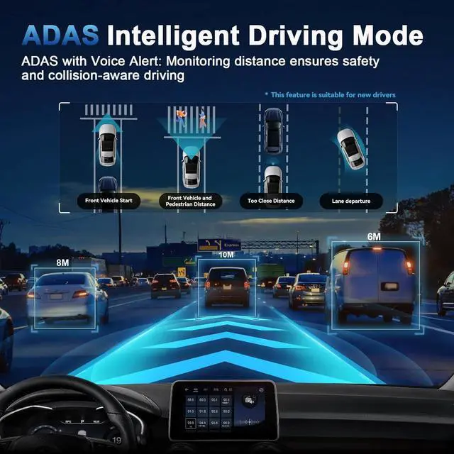[Unleash smarter safety on every drive]Powered by an AI NPU, this auto camera dash cam delivers real-time ADAS warningsLane Departure, Forward Collision, pedestrian detection, vehicle-movement, and headway alertsso you stay a step ahead. The rear camera adds Blind Spot Detection (BSD) and Lane Change Assist for extra confidence.