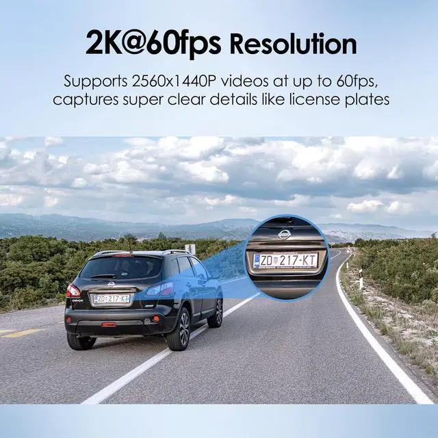 2K@60fps Dash CamA129 Plus dash cam is the upgraded version of A129, it supports 1440P 60fps or 1440P 30fps resolution, clear details can be easily captured including license plate and signpost. 140° wide angle is enough to cover the whole road and will not distort the image.