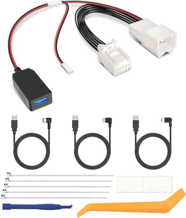 Built-in USB to Hide Dash Cam Charger Adapter Cable Hidden Type B 10-pin power port sits behind the auto-dimming rearview mirror or inside the overhead console. Remove the small trim cover on the mirror base or console to access; verify placement before installation. Our built-in USB adapter converts this port into a USB power source for your GPS, dashcam, radar detector, mirror camera, car charger or any USB gadget for a clean, concealed setup.