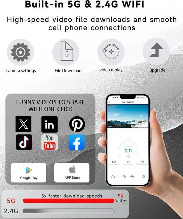 5GHz WiFi and free app controlPlease note: This app is completely free to use. Please do not activate the VIP features in the app, as these features are not necessary. The dashcam has built-in 5GHz WiFi, which is 4 times faster than 2.4GH z (also supports 2.4GH z). It can be paired with free apps on Android or iOS systems for seamless control, video preview, download, and sharing functions.