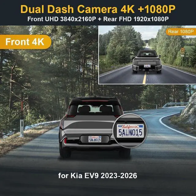 Kia EV9: Fitcamx integrated 4K front and rear dash camera blends perfectly with the mirror housing, looking like the original equipment. And it does not block the view whatsoever, as if the car comes with it. Compatible with Kia EV9 2023-2026 vehicle styles. *Confirm correct model with FITCAMX if not sure!